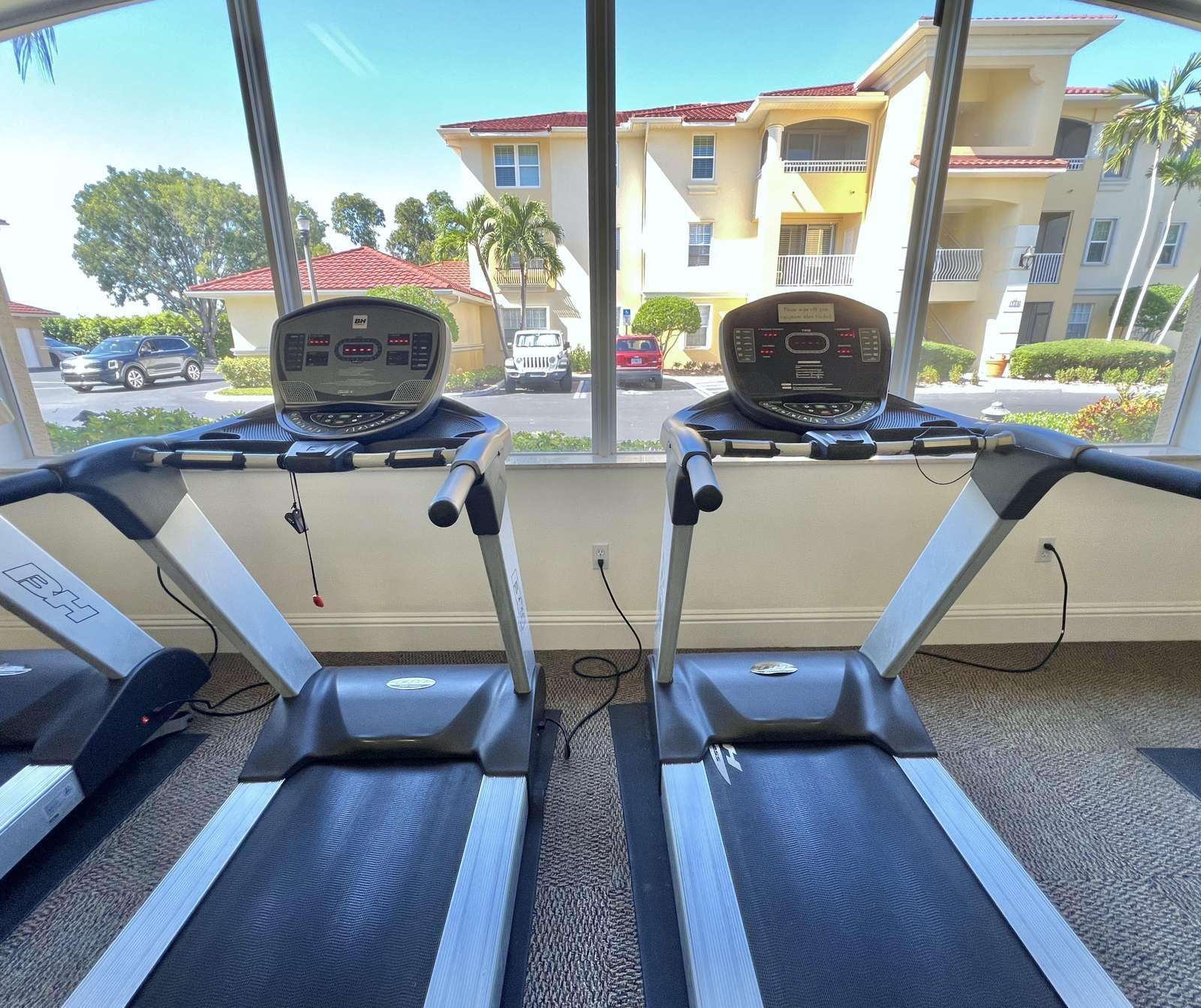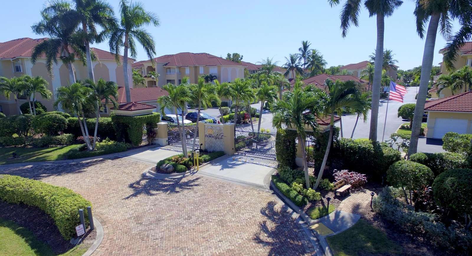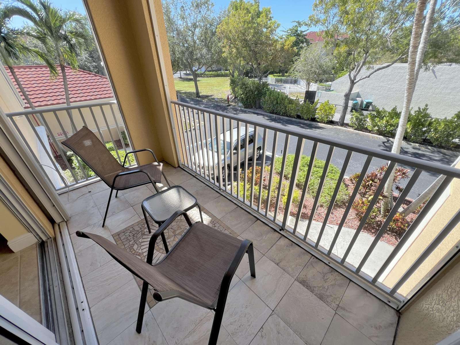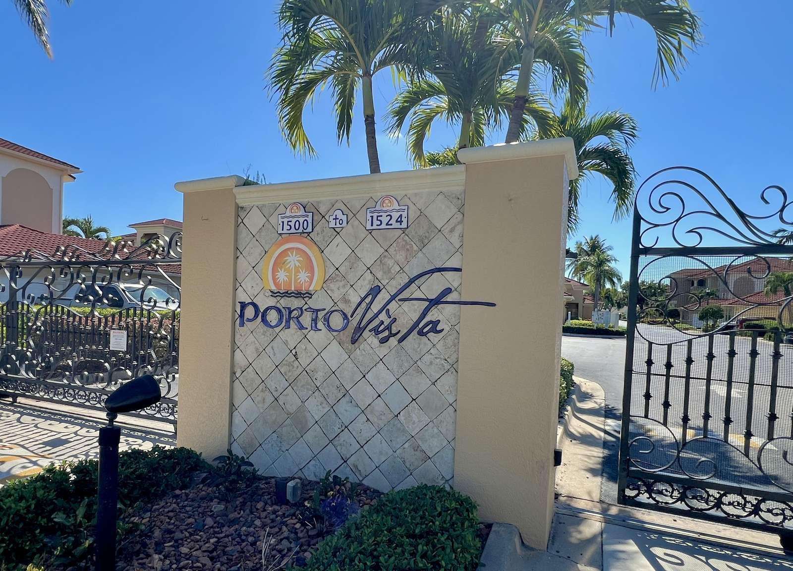 Step through Villa Porto Vista's charming brick-paved gate and feel instantly at ease. This spacious 2-bedroom, 2-bath condo on the second floor offers a private entry via stairs or elevator, blending comfort with convenience. Nestled in the secure, gated community of Porto Vista, you’ll enjoy lush landscaping, a sparkling communal pool, a clubhouse, and a fully equipped fitness center. The unit features a private balcony perfect for morning coffee or evening relaxation, a designated garage, and modern amenities including air conditioning, a full kitchen, and a smart TV.