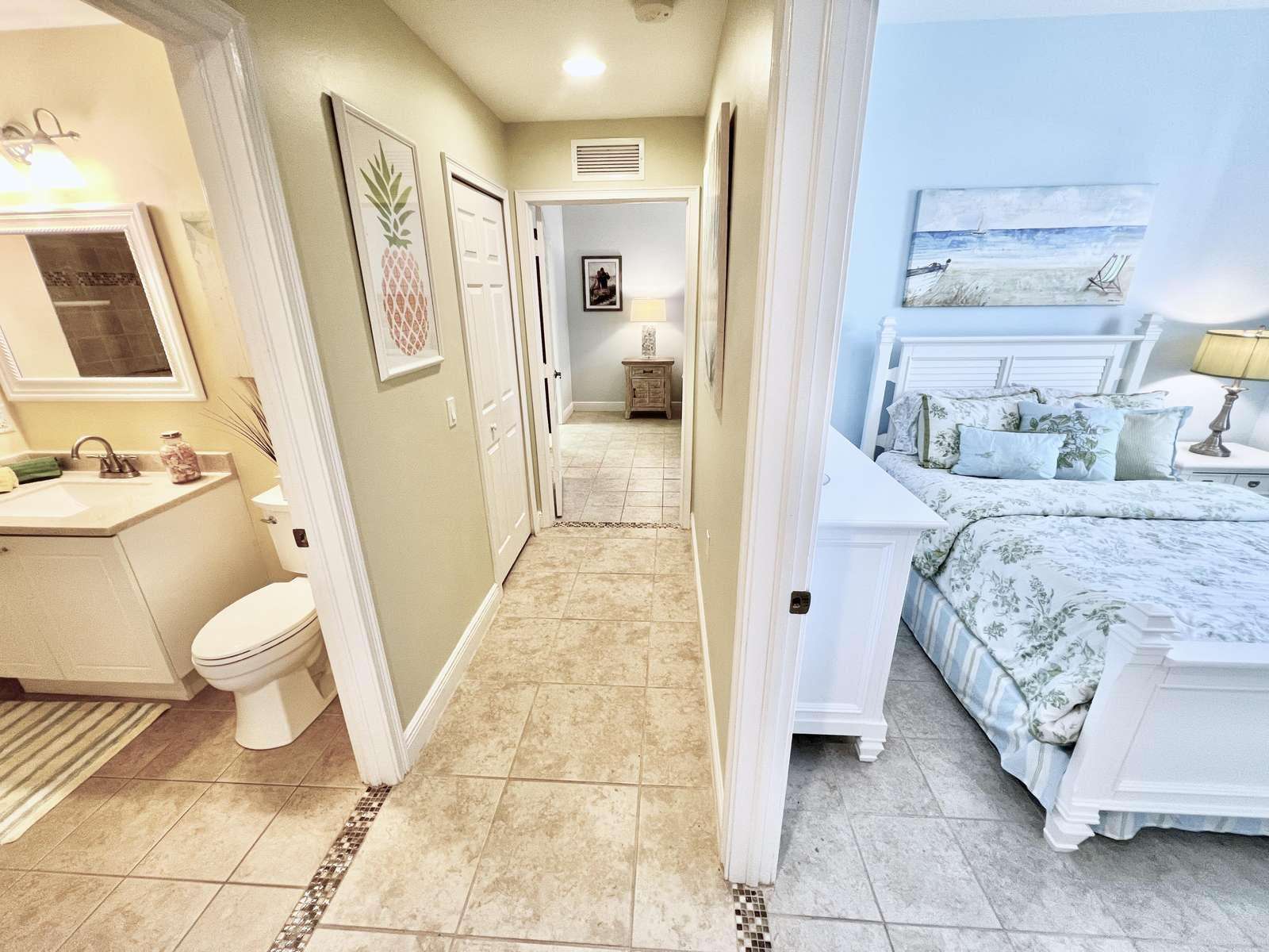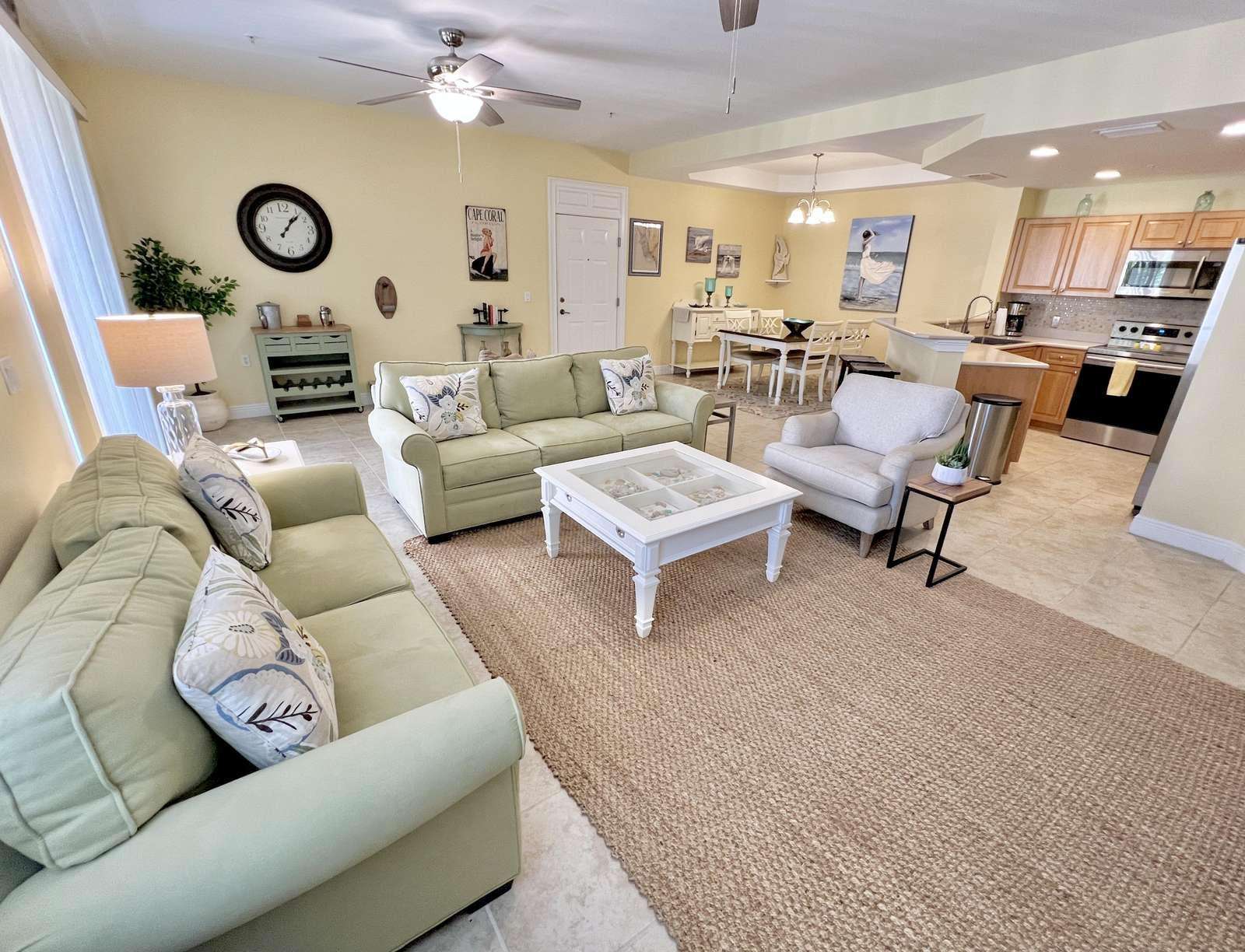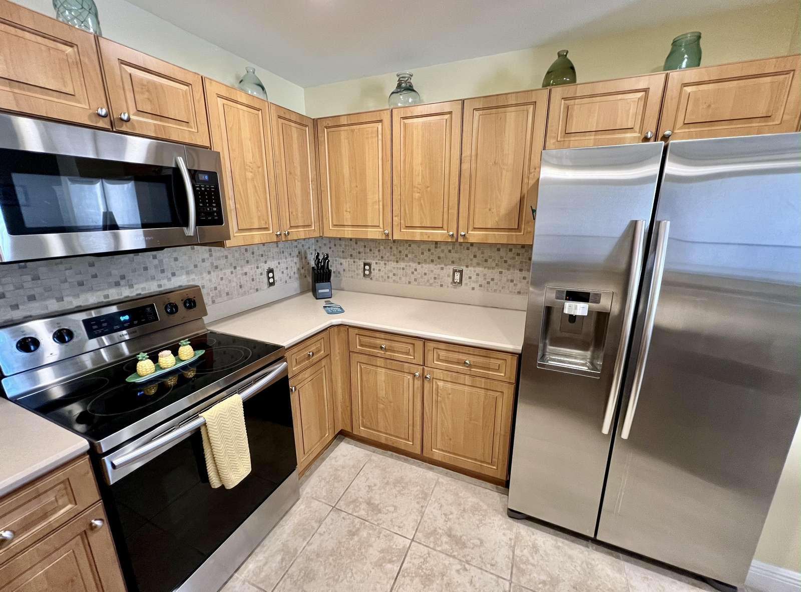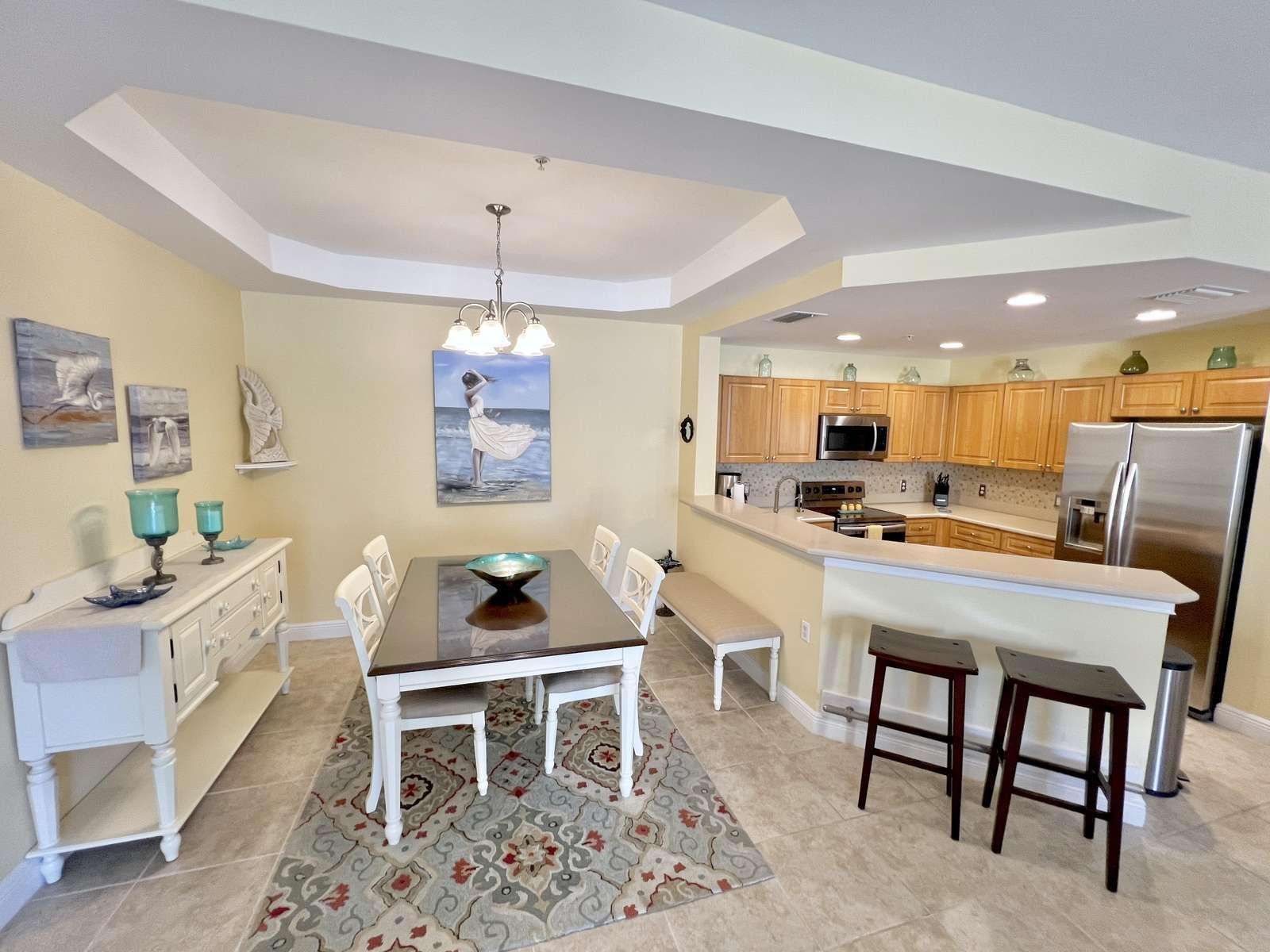 Step through Villa Porto Vista's charming brick-paved gate and feel instantly at ease. This spacious 2-bedroom, 2-bath condo on the second floor offers a private entry via stairs or elevator, blending comfort with convenience. Nestled in the secure, gated community of Porto Vista, you’ll enjoy lush landscaping, a sparkling communal pool, a clubhouse, and a fully equipped fitness center. The unit features a private balcony perfect for morning coffee or evening relaxation, a designated garage, and modern amenities including air conditioning, a full kitchen, and a smart TV.
